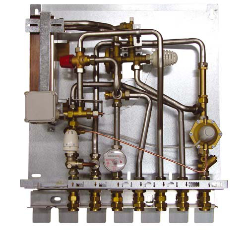 - Regulator diferencijalnog tlaka na ogrjevnoj strani fiksno namješten, sa zonskim ventilom i termopogonom namijenjenim regulaciji temperature prostora.
