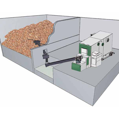Stanica za preuzimanje kanal dopreme iz skladišta na dodatni usponski puž (A) izvedbe za dopremu sječa/peleti s mješalicom: