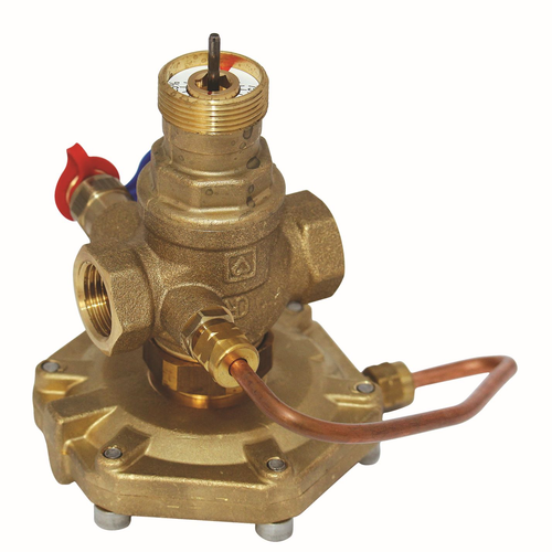 Kompaktna izvedba, kućište od mjedi otporne na otcinčavanje, s vanjskim navojnim priključkom, za DN 15 i DN 20 konusno brtvljenje, za DN 25 - DN 50 ravno brtvljenje, 2 mjerna ventila za mjerenje diferencijalnog tlaka i integriranim regulacijskim ventilom za kontinuirani pogon; priključak pogona M 28 x 1,5; hod 4,0 mm. Stezni kompleti i navojni priključci naručuju se posebno. Pogon nije sadržan u isporuci.