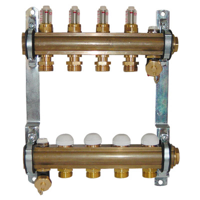 S Flowmetrom 6 l/min, veličina 1, sadrži razdjelnik polaza s termostatima, razdjelnik povrata s Flowmetar regulatorima protoka, priključak za crijevo za odzračivanje i pražnjenje; čepove i držače. Izlazi razdjelnika nisu jedni ispod drugih već su zamaknuti. Izlazi razdjelnika su s vanjskim navojem 3/4, a ulazi s unutarnjim navojem 1.